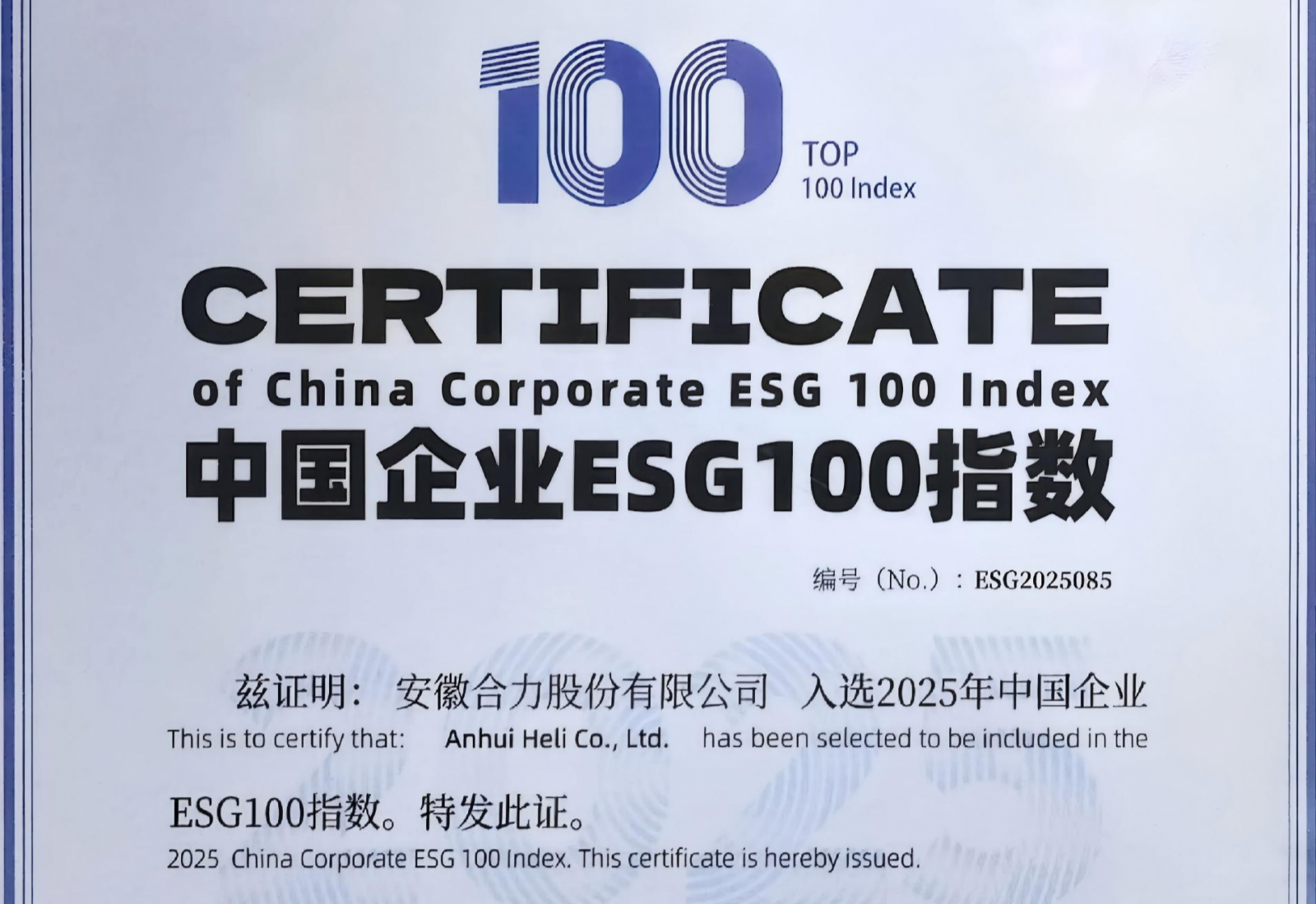 查看詳情 >不只是高質量設備,更是可持續未來!合力入選2025中國企業ESG100指數榜單
