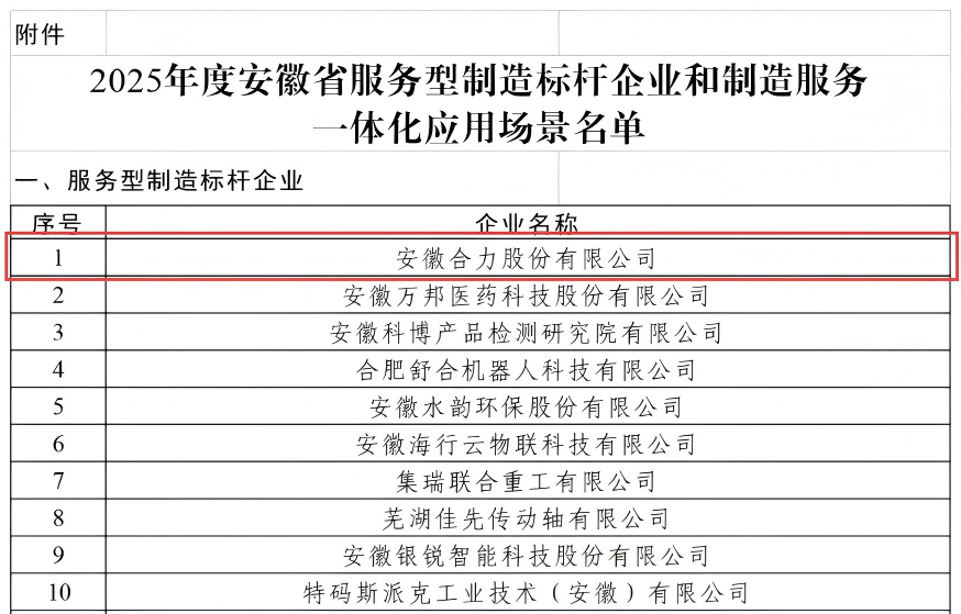 融合發展顯成效 標桿引領創一流——合力入選安徽省兩業融合發展標桿單位和服務型制造標桿企業