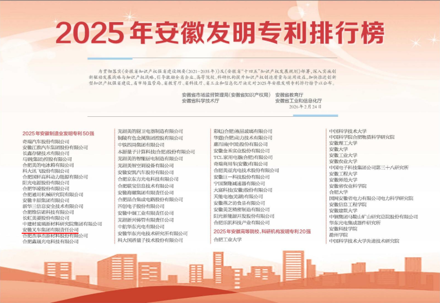 安徽叉車集團榮登2025年安徽省制造業發明專利50強榜單